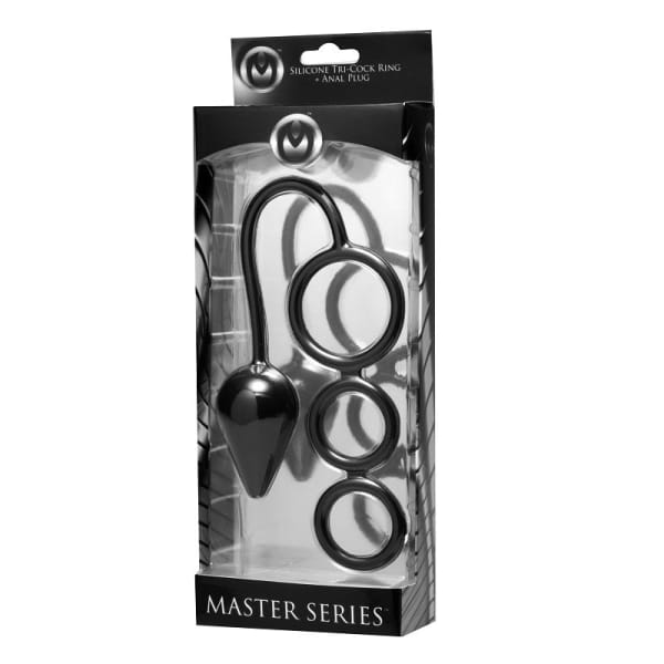 Triple Threat Silicone Tri Cock Ring With Anal Plug