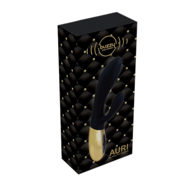 Take pleasure and luxury into your hand with Auri from the Buzzy Gold Series. This opulent rabbit-style vibrator is made of high-grade silicone, with a soft tip for G-spot stimulation, curved shaft and flexible clitoral stimulator. Explore the orgasmic potential with 7 powerful functions and 5 mind-blowing intensities. Auri is rechargeable, easy to clean and provides hours of non-stop enjoyment.
