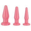 This graduated butt plug set is the ultimate toolkit for those wanting to explore with anal play! Each plug has a gently tapered and rounded tip, making it easy to work your way up to bigger and better anal toys. Use plenty of lube and take your time as you let the sleek surface slip in smoothly and expand you. Once you pass the widest point, the plug narrows down to a smaller stem, and the wide base ensures it stays put and can be easily retrieved. The rich pink material is slightly flexible yet firm, adding a touch of visual interest as you challenge yourself to level up. To clean, simply use mild soap and warm water, followed by a toy cleaner and a dry wipe. Keep it with your other anal toys and don't mix it with those for vaginal or oral use..