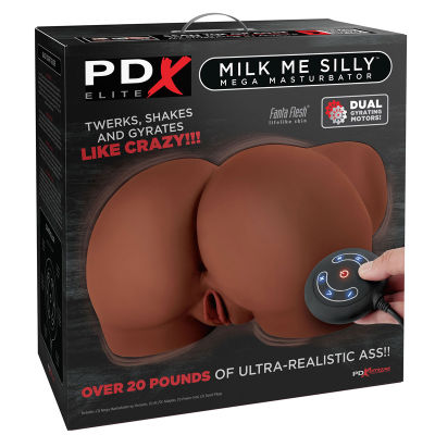 This giant butt masturbator PDX ELITE Milk Me Silly with over 20 lbs. of our signature Fanta Flesh has two mega powerful gyrating motors that can vibrate and massage at the same time. The gyrating motors offer 5 rotation modes and 5 rotation speeds. Another vibrating bullet is strategically placed to maximize the stimulation. The powerful bullet also offers 5 vibration modes and 5 vibration speeds.