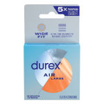 Durex Air Wide Fit condoms are ultra thin, designed to maximize sensitivity, and still give a high level of security and protection. For the comfort of those who prefer a size wider than our regular fit AIR Condoms. Durex Air condoms are lubricated and teat-ended for a more comfortable and pleasurable experience. Every single one is packed the right way up for simple, fumble-free usage. These nearly see-through condoms are made from the finest raw materials. Each condom is tested 5X for durability and strength.