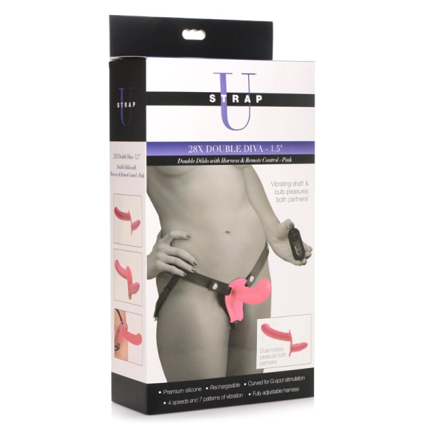 28X Double Diva 1.5"Double Dildo With Harness & Remote Control - Pink