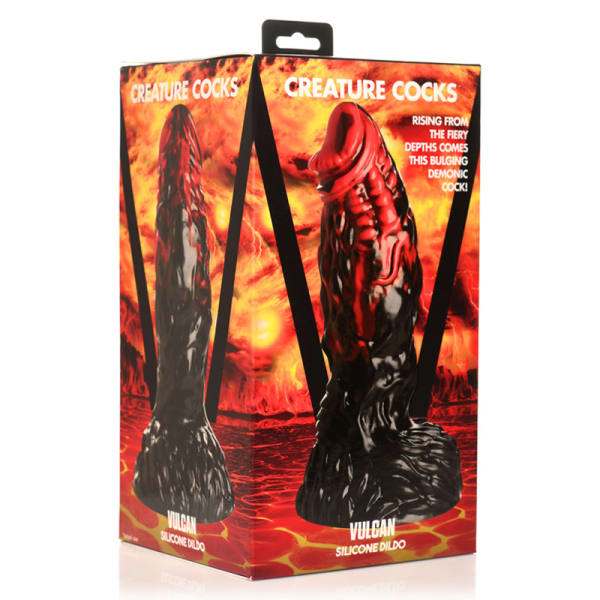 Things are about to get hot, very hot! This Vulcan rod comes from the Roman god of fire! With its bright red and deep black color, the shaft has lots of textured bumps, ridges, grooves and ribs that seductively stimulate you with each penetration! With a permanently wet look that seems like this rod is sweating from the heat, it is swollen and ready to burst from the volcanic body it comes from! This meaty dong has a tapered head for easier insertion, but a girthy, thick body that will stretch your limits! Made out of premium, flexible, phthalate-free silicone, this dong is body-safe and best used with water-based lubricants only. Enjoy hands free rides due to the strong suction cup base! Invite a partner to indulge in kinky cosplay or fantasy roleplay and use their favorite harness to transform this dong into a strap-on! Afterward, make sure to wash it with warm water and mild soap, then spray it with a toy cleaner and air-dry. Keep out of direct sunlight and heat.