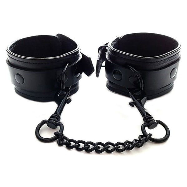 These dark and sexy looking leather wrist cuffs are soft and comfortable enough the be restrained for a lengthy time. The removable chain allows you to be chained up in various positions whilst being able to add attachments to the D-ring.