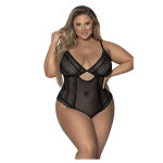 Description: From the Exposed by Magic Silk collection, this style includes: a teddy featuring a blend of mesh and lace throughout, a keyhole design in the front, elastic and adjustable shoulder straps with black sliders, subtle black o-ring details in the back, and a criss-cross strappy design across the back.