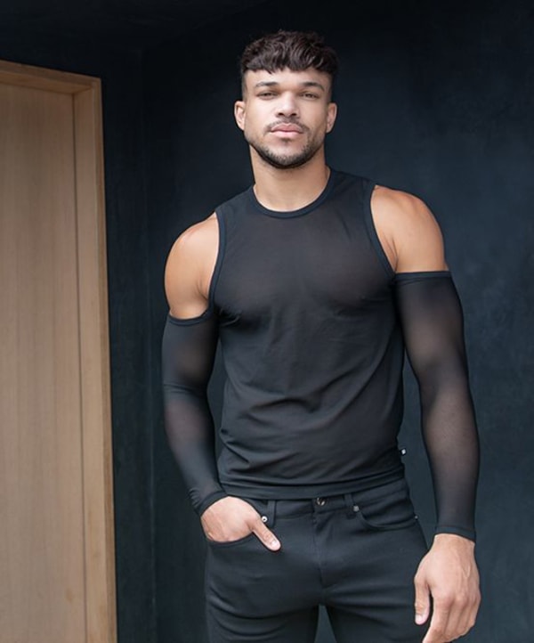 Designer Andrew Christian's creative vision breaks free with the new UNLEASHED Flaunt Tee. This sophisticated yet sexy style is totally unique and very you. Show off everything you've got while looking chic and unleash your desires. Plus, thanks to the limited edition open-shoulder cut, soft and sexy black fabric, and slimming, form-fitting design, this will quickly become your favorite top. Put this on for your next trip to the gym, beach, or club, and watch those heads turn! Unleash your passion and flaunt it!
