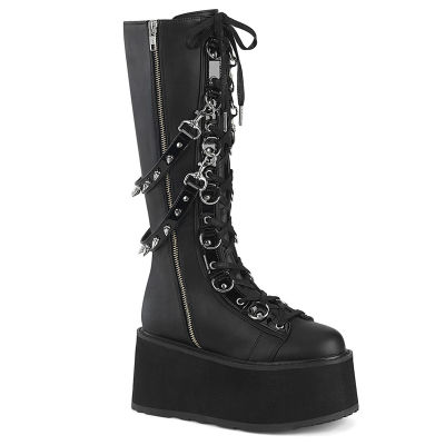 3 1/2" (90mm) Platform Lace-Up Front Knee High Boot Featuing Alternating O-Ring and Eyelet Lacing and Removable Spike Studded Hanging Back Straps, Outer Side Metal Zip Closure