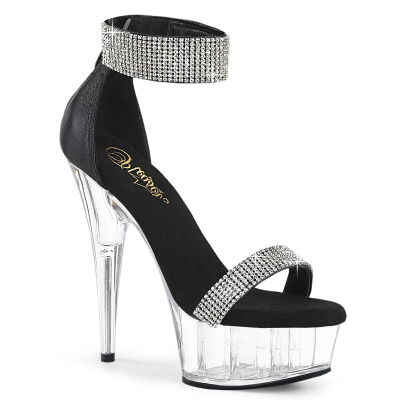 6" (152mm) Heel, 1 3/4" (45mm) Platform Close Back Sandal Featuring Rhinestone Embellished Ankle Cuff and Toe Strap, Back Zip Closure
