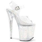 8" (20.3cm) Stiletto Heel, 4" (10.2cm) Platform Ankle Strap Sandal Featuring Mini Iridescent Glitter on the Entire Upper and Platform