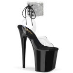 8" (200mm) Heel, 4" (100mm) Platform Rhinestone Embellished Ankle Cuff Sandal