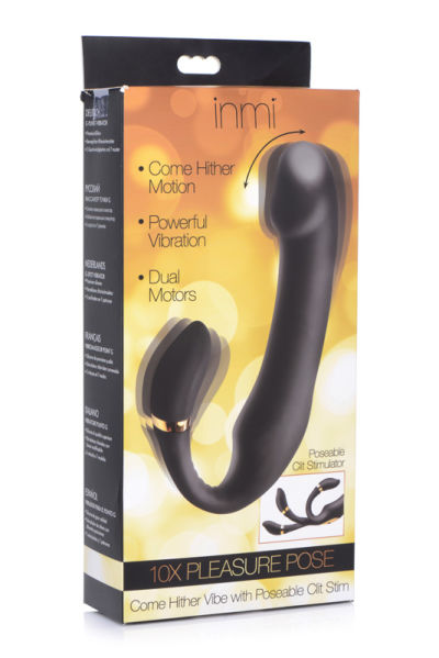 10X Pleasure Pose Come Hither Silicone Vibrator with Poseable Clit Stimulator