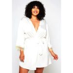 Soft satin robe with gold foil lace trim and slit detail on sleeves. Material: 100% Polyester