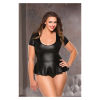 A flirty top with peplum, low scoop neckline and short sleeves. Full wet look back. G-string included.