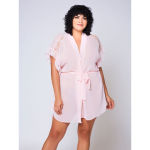 Soft chiffon robe with lace insert at shoulders, ruffle sleeves and matching waist tie. Material: 100% Polyester Chiffon