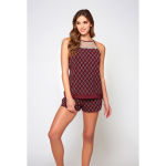 Diamond print knit cami set with halter neck and keyhole tie back. Material: 95% Viscose 5%Spandex