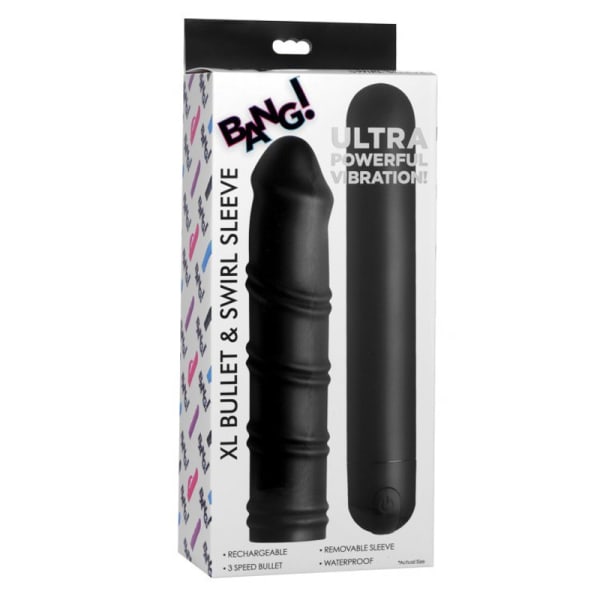 This extra large vibrating bullet features an extended body slim and silky smooth with a powerful motor for exciting internal or external pleasure! Featuring a Swirling textured sleeve with dynamic ridges for extra pleasure as you thrust in and out. The defined phallic head gives this XL Bullet a realistic fill!