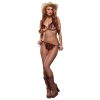 From the Magic Silk Bedroom Fantasy collection, this style includes: A cupless halter bra that ties around the neck and back featuring fringe detail and a matching crotchless g-string. Soft, sensual, stretch fabric.