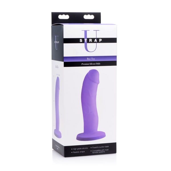 This curved silicone dildo has a textured shaft, curved cock head, and flared base that is ideal for strap-on play. The shaft is velvet-smooth for comfortable penetration, but the bulging veins will feel realistic and remarkable within an ass or pussy. The tip targets pleasure with a curved for maximum G-spot or P-spot stimulation. The suction cup base allows you to use the Boi Toy solo, but is also compatible with most standard strap-on systems. The non-porous and phthalate-free silicone is body safe and easy to clean with mild soap and warm water. Avoid use with silicone lube.