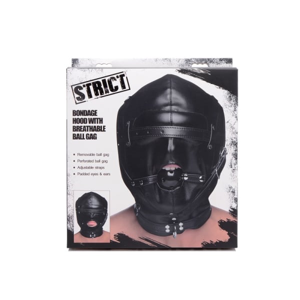 Play with sensory deprivation for an intensified experience with your lover! Put your plaything in a blackout hood that is padded at the eyes and ears so that they cannot see or hear what you are going to do to them! Every touch, tickle, and tease will be a surprise to them. The sensations will be amplified by the loss of their other senses! Three adjustable straps wrap around your partners head and there is a corset lace in the rear so that you can fully secure the hood to their individual size. A D-ring on the collar allows you to add a leash or a variety of other BDSM accessories. Finally, this hood includes a breathable ball gag, perforated so that your plaything can easily breathe while you play! The gag attach with snaps so that it is easy to remove in the heat of the moment! Experience new heights of pleasure with your helpless lover!