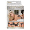 From the Booty Packs by Magic Silk collection, this 3-pack includes: One strappy g-string featuring satin bow, cutout accents and Y-back, one cheeky boy short featuring bow accent in front and v-cut with strappy detail in back, and one thong featuring a wide waistband, scalloped trim and crotchless cutout. G-string: Black and white cross-dyed stretch laced paired with plush elastic trim, Boy Short: Stretchy, black, cross-dyed, floral lace complemented with plush elastic, Thong: Black and white cross-dyed, stretch lace with delicate scalloped, black lace trim. 15% Spandex / 85% nylon