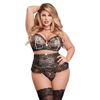 Retro rise garter features ruffle trim and detachable and adjustable garter straps with metal clips