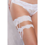 Stretch lace garter set with ribbon bows.