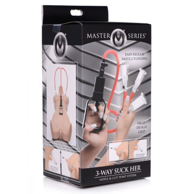 Watch as your nipples and clit get engorged inside the cylinders of this 3-way pump. Suction increases sensitivity and temporarily engorges, to give you two puffy, tender nipples and a swollen clitoris. Imagine the heightened sensual sensations you can experience, solo or with a partner! Pump 2 parts at once! Just place the clear cylinders over your sensitive little nubs, using lube if necessary to make them airtight. The trigger-style hand pump is easy to use - simply squeeze to build pressure within the cylinders. The tubing includes 2 individually controlled air flow valves to customize the experience for each nipple and your clitoris. When you are satisfied with your swollen buds, a quick release valve allows you to quickly decrease the pressure, effectively freeing your nipples and clit. You can even detach the cylinders after pumping and keep them on while you fool around. Make your most sensitive parts even more sensitive!