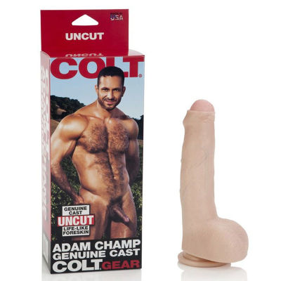 It doesn't get better or hotter than this. Get ready to get it on with a COLT superstar. This genuine cast of Adam Champ is one cock to rock. Featuring uncut, life-like foreskin, and crafted with Better-Than-Real Plus material that's hand finished and colored for exacting detail as smooth as it is sexy. A sturdy suction cup base and phthalate-free PVC construction mean safe and stimulating fantasies come true. So go ahead and indulge your every whim.