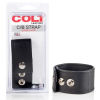 Soft black leather, with "COLT" logo stud fastening. Double width and adjustable.
