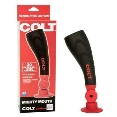 Want more than a masturbator in a flash light tube? Want power, functions and versatility? A totally self-contained power stroker, the COLT Mighty Mouth is a 100% waterproof, Vibrating pleasure stroker with deep throat, and a noduled chamber for added sensations. With 30 incredible functions of vibration, pulsation and escalation - yes, 30 - you'll get the gratification you crave. Featuring a memory chip that resumes on the last function used and easy push-button control, the COLT Mighty Mouth is as simple to use as it is satisfying. It comes with an optional multi-position hands-free suction cup swivel mount, too. And the high quality TPR sleeve is removable for easy cleaning. With a TPR sleeve, silicone button and decor, and a case constructed of ABS with PU Cote, the COLT Mighty Mouth keeps you as safe as you are satisfied. You'll experience intense stimulation that's sure to satisfy. Both flexible and durable, for long-lasting gratification, the Mighty Mouth offers powerful sensations for the utmost in sensual pleasure. Hygienically superior and incredibly gratifying, you'll get your desires more than met with the COLT Mighty Mouth. So if you're after a thrilling experience in the bedroom, you've found it. Get ready, get set, to enjoy exciting stimulation and satiation whether you're flying solo or with a partner. The Mighty Mouth requires water-based lubricant with use and best enjoyment. To clean the Mighty Mouth, remove the sleeve, and then wash it thoroughly with warm water and soap.