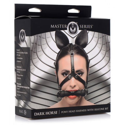 Perfect for training your prized pony, this head harness had equine ears and a silicone bit gag that will keep those neighs at bay. There are a total of 6 points adjustment points for the perfect fit. Slip it onto your slave or sub for a galloping good time at an event or if you are horsing around in private... The vegan-friendly material may be cruelty-free, but that doesn't mean you have to be! However, the nickel-free hardware will not harm your precious pony. The premium silicone bit can even be unsnapped and removed when you want to hear those beastly noises as your pet labors for you.