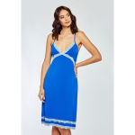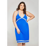 Lace trim chemise with cross back, adjustable shoulder strap and back slit.