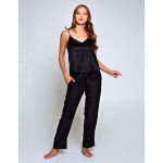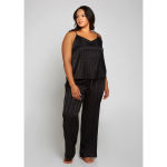 2 PC jacquard satin cami and long pants set with shoulder ties Material: 100% Polyester