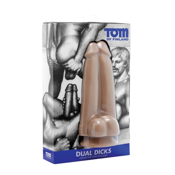 Think you can handle two cocks at once? This unique dildo presents you with two enormous erections to stuff up your ass! Hand sculpted exclusively from original Tom of Finland artwork, this is a pleasure tool that will make your mouth water just looking at it! Secure the suction cup base to any smooth, hard surface to slide yourself down on these boys and go for a ride! Stretch yourself to maximum capacity with your very own piece of erotic art! Made of phthalate free material. Cleans easily with mind soap and warm water.