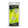 The Duo+ is a 3 speed,stretchy,reusable dual vibrating ring designed to comfortable fit all sizes,The thicker band constricts blood flow by keeping the blood in the shaft of the penis.