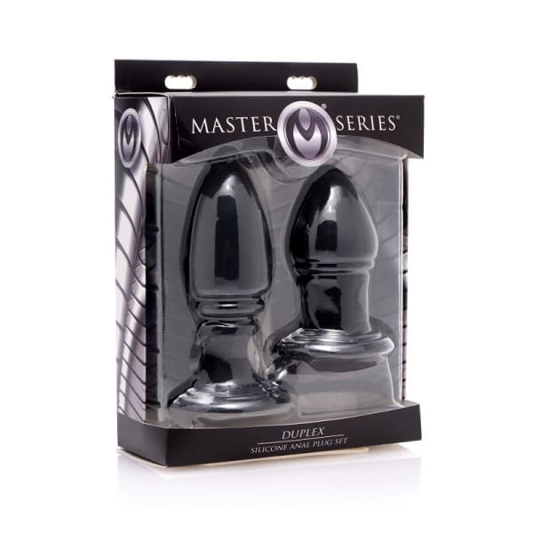 This devious duo is the perfect set for anal lovers, no matter what mood you are in. Enjoy playing with both plugs, or choose one each evening, whether you feel like short and wide, or long and narrow. Each plug has a tapered tip that makes insertion comfortable and easy. Push the smooth, seamless silicone into you, or use the suction-cup bases to mount the plugs and sink onto them. As you reach the bottom you will be delighted by the sensation of ribbing, subtle on the smaller plug and more defined on the longer plug. These anal toys are non-porous and phthalate-free for a body-friendly experience. Avoid use with silicone Lubricant. Clean with mild soap and warm water.