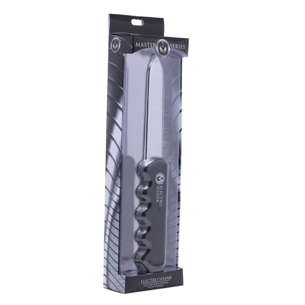 This prod-style electro shock device is a devious way to keep your sub in line! The Electro Shank is designed for electro play enthusiasts and curious sadists and masochists alike. Take hold of the comfortable handle while your play thing prepares for a zap! This device delivers an intense shock that is sure to correct your lovers naughty behavior. The sleek, sensual blade is perfect for teasing your sub before delivering the shock! An easy-to-use button allows you to control the length and frequency of the shocks, while the handle and blade are safe to the touch.