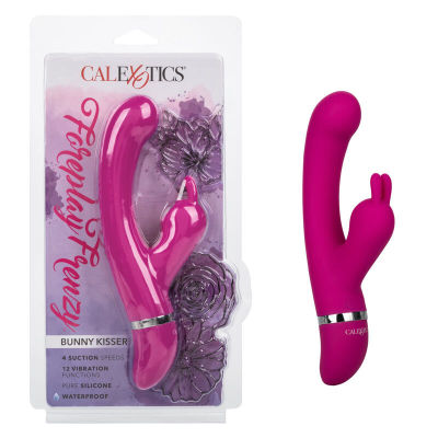 Indulge into passionate playtime with the Foreplay Frenzy Bunny Kisser and bring naughty fantasies to live. The perfectly sized dual stimulator is complete with 12 powerful functions of vibration, 4 speeds of intimate suction, and independently operated dual motors.
