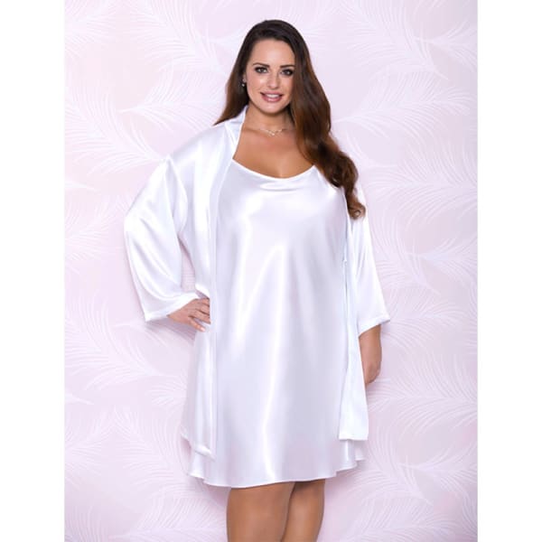 Bridal satin robe with Bride embroidered graphic on the back and removable tie.