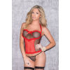 Heartthrob. Halter heart shaped bustier in fishnet and heart mesh, ruffle back detail, adjustable tie neck and fishnet g-string.