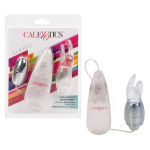 The high intensity snow bunny is ready to get you hopping with its tantalizing ears and strong vibration. The squishy ears will go to work teasing your clitoris in stereo and you'll get to see just how high intensity this bunny it. The soft squishy sleeve glides expertly against your clitoris with a little lubricant. This vibrator is easy to operate, simply slide the dial on the side of the remote and cycle through multi-speed vibrations. Take of the bunny sleeve off for a completely different and let the ABS plastic coated bullet tease you inside and out. Requires 2 AA batteries to operate.