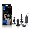 His Prostate Training Kit contains a comprehensive collection of premium silicone probes and a powerful multi-speed stimulator, for ultimate orgasmic pleasure. The trainer kit is perfect for first-time users and experienced explorers and requires 2 AAA batteries to power up the fun. Made from unscented, superior silicone, this kit contains a sturdy selection of different shaped probes that are designed to heighten male sensitivity and increase satisfaction. Included are a curved pinpoint prostate probe, a bulbous silicone probe with a support ring, and a curvaceous beaded probe with easy to use retrieval loop. The silver plated bullet shaped multi-speed ABS stimulator is designed to fit securely inside the loop for intense vibrating, stimulating action. For maximum excitement and intensified sensations always use a quality lube with this kit. Clean all items before and after every use.