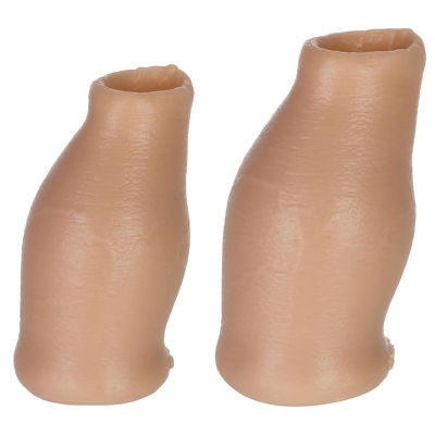 MORESKIN HOOD is a set of pure silicone faux foreskin hoods. It's made from high quality Pure Platinum Silicone so it's soft and squishy like flesh. Each set of MORESKIN comes with two different sized hoods to give you the best fit and feel whether you're soft or sporting a hard-on. MORESKIN HOOD is a realistic drooping sheath. Our MORESKIN are some of the only non-disposable faux foreskin hoods on the market.