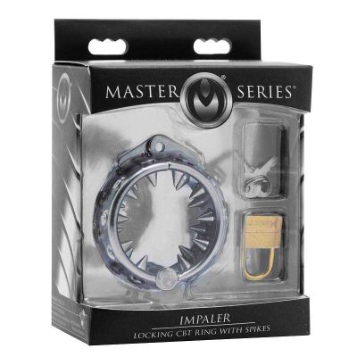The Impaler is the CBT device you have been waiting to torment that package with! This stainless steel ring locks shut around a scrotum, penis, or all of the above to poke that tender flesh with 18 quarter-inch spikes. Sadists and masochists will both enjoy the painful effects of this uniquely evil little ring! The heavy material makes the Impaler an excellent ball stretcher, tugging down on that junk to create the one-of-a-kind feeling you crave. Put your slaves most sensitive parts under lock and key, or put yourself in a predicament with this dastardly tool!