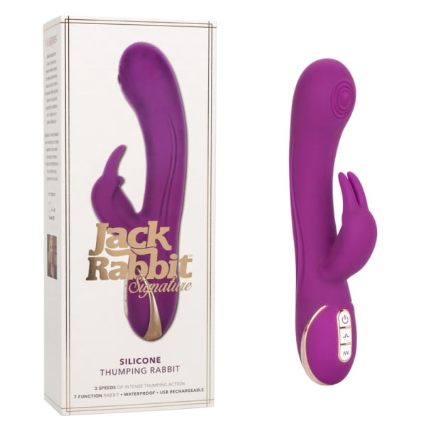 After over 30 years of pleasure, the Jack Rabbit has crafted their most luxurious vibrator yet. The Silicone Thumping Rabbit is a premium silicone vibe with 7 functions of vibration and 3 shaft pulsation speeds. The ravishing rabbit flicker to the rhythm of 7 thrilling functions vibration to tease, please and tantalize; Get playful with deeply gratifying vibration, escalation and pulsation functions for a truly indulgent pleasure experience.