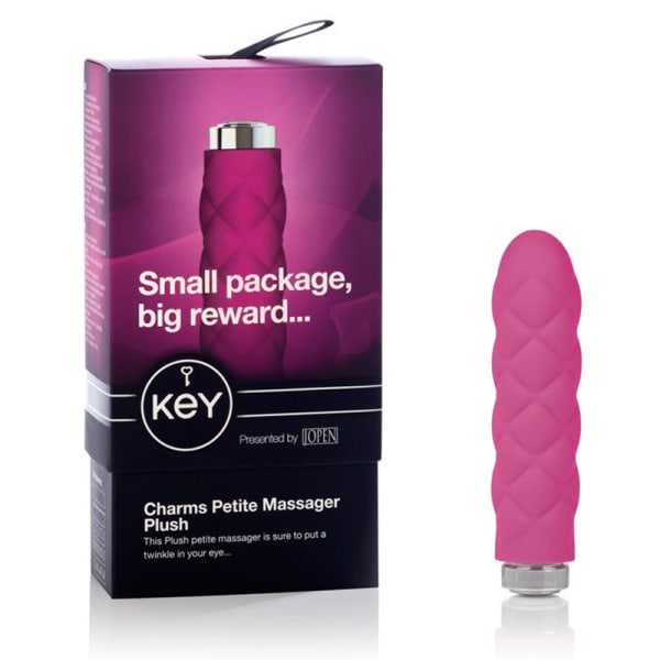 The Key collection by Jopen is seamless and luxurious. This textured vibrator is coated in silky smooth silicone and is body safe; the plush texture provides extra thrilling stimulation. The whisper quiet vibrator is even waterproof so you can bring it wherever you crave. The Plush is easy to operate with a one touch button on the button, simply press and hold for 3 seconds to turn on or off. This ensures that your toy won't start vibrating if you take it on the go. Choose your favorite vibration pattern; there are 5 so you are definitely going to find one that you love. To operate insert 1 AA battery and let the pleasure begin.