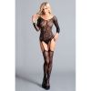 Features: Long sleeved suspender body stocking with scooped back gives your partner access to your most intimate area while leaving some areas mostly to the imagination.