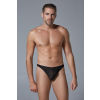Tight fitting thong with a leopard motif. It features an elastic waistband, elasticized thighs and a partial back.