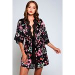 Satin and lace robe with sleeve opening and adjustable tie. Material: 100% Polyester