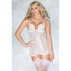 Features: Lace chemise has a beautiful ribbon lace up back and accent panels, removable garter straps and a matching thong.